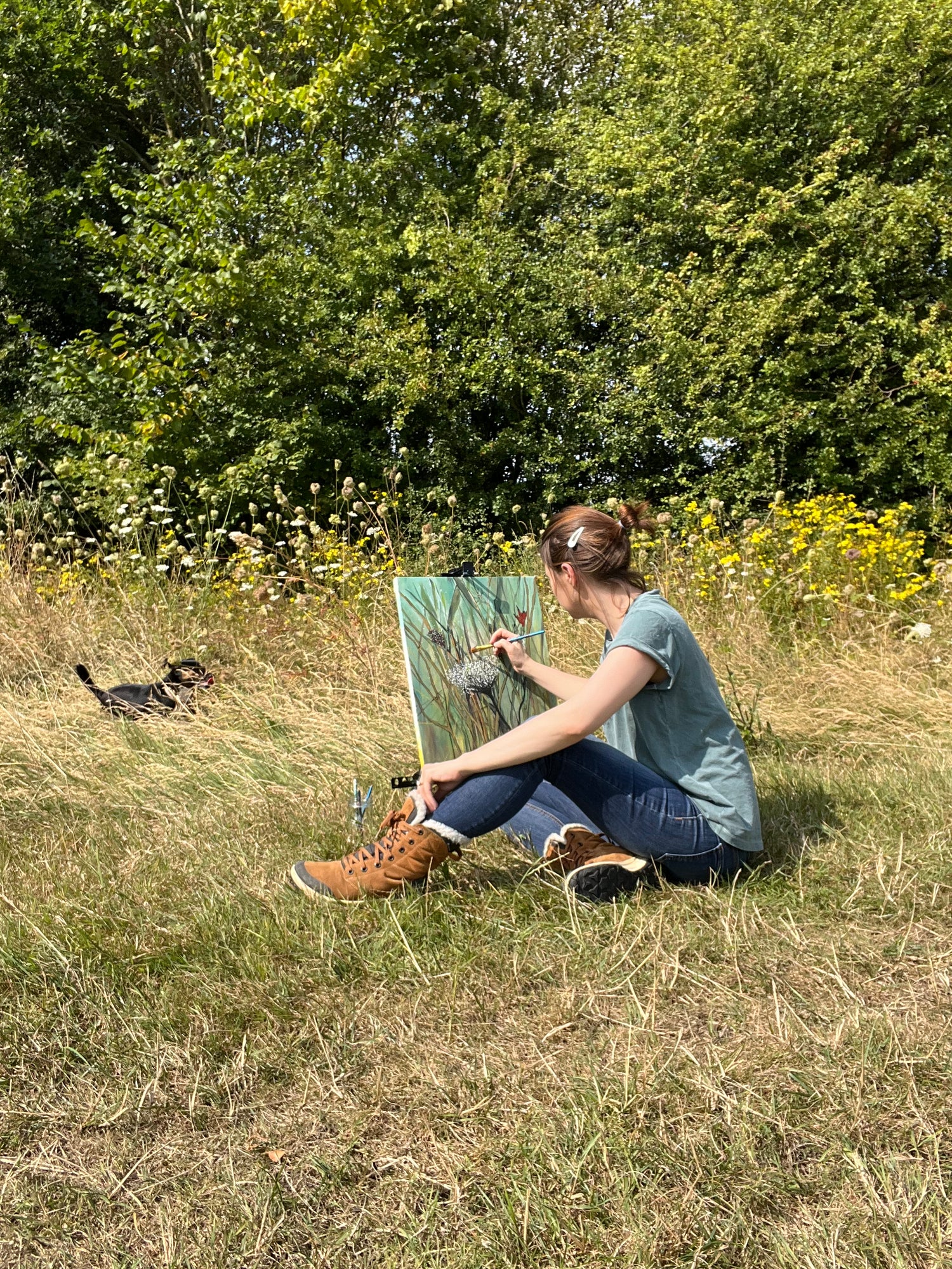 Long walks through woodland and meadow environments inform palette, mark-making, and composition.
